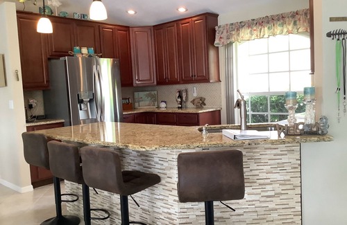 From the moment you open the front door you are greeted with a gorgeous view right through a wall of sliding glass to the screened in pool with a lovely dock and canal at the rear. Open concept living room dining and kitchen lets everyone enjoy the property. One side of the house contains a very large master suite and the other side has two bedrooms and another bathroom with shower. The highlight is the lanai with all day sun on the pool or shaded areas for dining and a lovely area with comfortable seating and a coffee table. Day or night, the lanai is the place to be. The pool was crystal clear and gorgeous. Located on a quiet street but not far from groceries, restaurants and any other amenities you might need. The kitchen is well equipped with modern appliances (the ice maker in the fridge is a hero). On the deck you have a great propane grill. Instructions were complete and clear. Wifi was solid. Owners were very responsive to inquiries, we never waited longer than a couple of minutes to hear back. An incredible value for a lovely stay. We were left wanting nothing. It is everything we wanted in our Florida dream home.