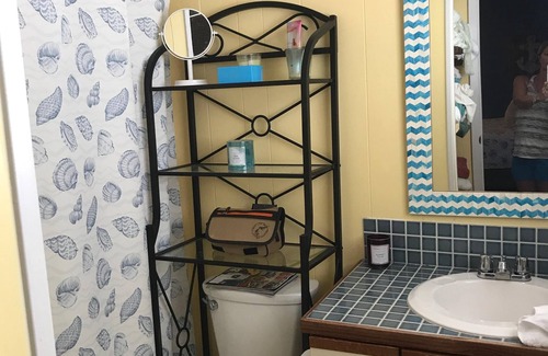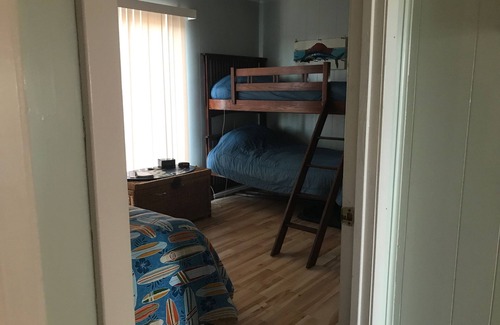 The Master bedroom has a Queen bed with a private bathroom. Second bedroom has a queen bed with twin bunk beds.Third bedroom has a twin trundle and full bed.The family room has a large flat screen TV and DVD player. Large covered deck off of the family room with with gas grill and table. Light , bright and perfect for entertaining, relaxing and fishing!