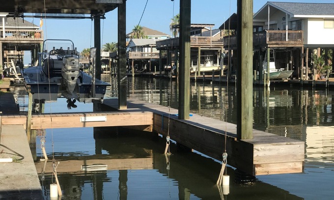 Your Gulf Coast Getaway.....Enjoy the beautiful Bay side sunsets from Treasure Island! A view of the San Luis Pass and immediate access to bay side fishing and crabbing. Public beach access is 1/4 mile away and a short drive to Galveston, Pleasure Pier , Moody Gardens, Schlitterbahn, and Surfside Beach. Perfect location for the avid fishermen and also for a family vacation. Just minutes from many local dining spots.