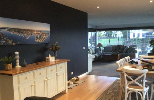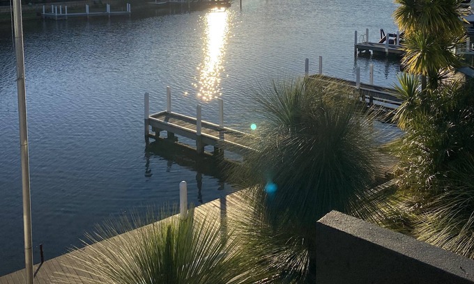 Stunning modern 3 Bedroom 2 bathroom House on the canal on Fort King Island. Surrounded by glass watch the boats and bird life go by. 15 min walk to town. Bring your boat with our own private jetty below the house. Pet friendly for well behaved dogs with great local walking tracks.