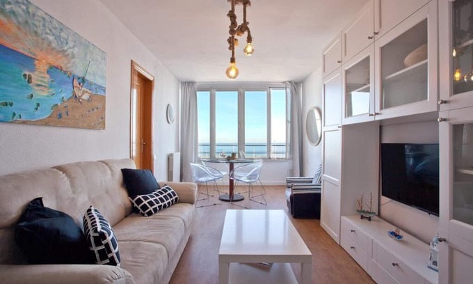 Apartment with marine decoration, with beautiful views over the port, beaches, sea and coastline, dominating the "skyline" of Barcelona, from its large windows. The train station that connects with Barcelona (25 '), is a minute's walk away, this same station communicates with Girona and Costa Brava.