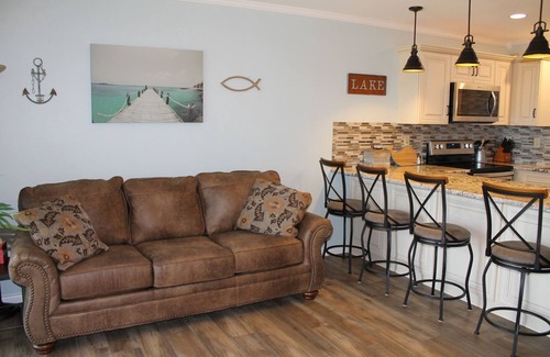 Relax and unwind on the patio and enjoy the view of the lake, pool and deer that come up to the property. You can feed the deer with corn provided in the condo. Chairs on the back patio. The property has a pool, laundromat, BBQ grills, picnic tables, paved boat trailer parking.