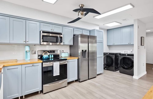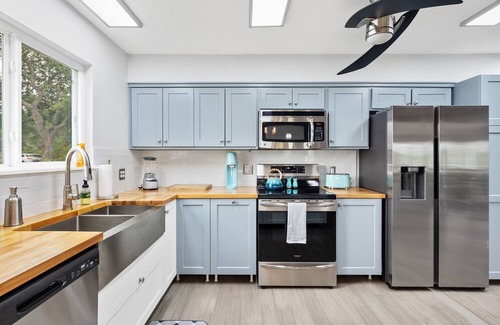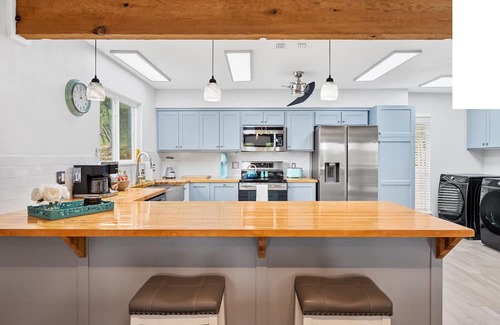 Fully equipped kitchen and furnished home available month-to-month. EV Charging outlet. Extra linens, hi-speed WIFI, 2 work stations, Smart TV, Ring doorbell, and keyless entry.