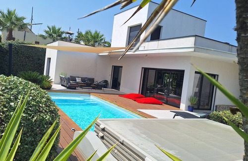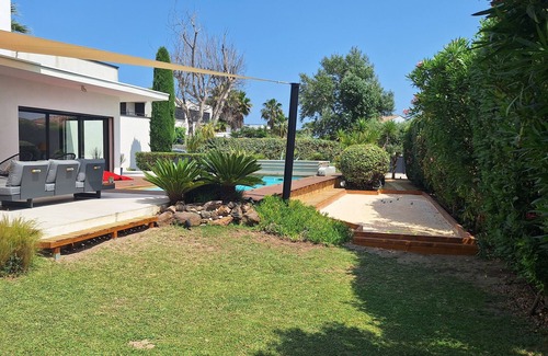 Cap d'Agde beautiful villa 450m from the sea, is located in Cap d'Agde. Cap d'Agde beautiful villa 450m from the sea, provides accommodation, featuring Parking, Pool, Fireplace/Heating, among other amenities. This Villa features Parking, Pool, Fireplace/Heating, to make your stay a comfortable one.