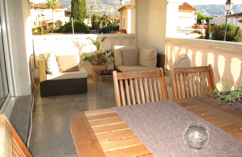 Charming townhouse with contemporary decoration with terrace and sea view, 2 -minute walk from the natural beach of Les Fosses. 150 m from shops and the port. Private beaches nearby.