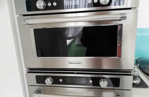 As you settle into this 2-bedroom, 3.5-bathroom rental, you'll find a living room, a dining area, and a safe. Bathroom amenities include a hair dryer, towels, and toilet paper. The kitchen is equipped with an oven, a stovetop, and a refrigerator, as well as a coffee maker, an electric kettle, and an ice maker. And because there's a washer and dryer, you can go a bit lighter on your packing.