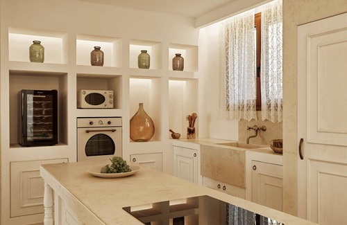 The crowning glory of Lesante Cape, the Cape Three Bedroom Sea View Villa with Private Pool is a magnificent recreation of a private countryside estate. The grandeur of aristocratic Zakynthian design is carved into every corner, with dark cobblestone exteriors divided by stately archways presided over by plant-covered wooden awnings. Inside, three bedrooms, a fully-equipped kitchen and independent living room host up to 7 guests in an atmosphere of luxurious comfort. In addition, an outdoor dining area, furnished sun terrace with a large private garden and 120m² swimming pool are framed by panoramic views of the endless Ionian Sea. The Cape Villa transports guests into the past, a chance to feel the timelessness of a quintessential Mediterranean summer in the exclusivity of your own private home.