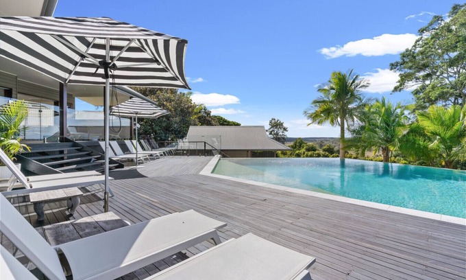 * A striking hexagonal infinity-edge pool, with breathtaking views stretching towards Cape Byron Lighthouse and Mount Warning