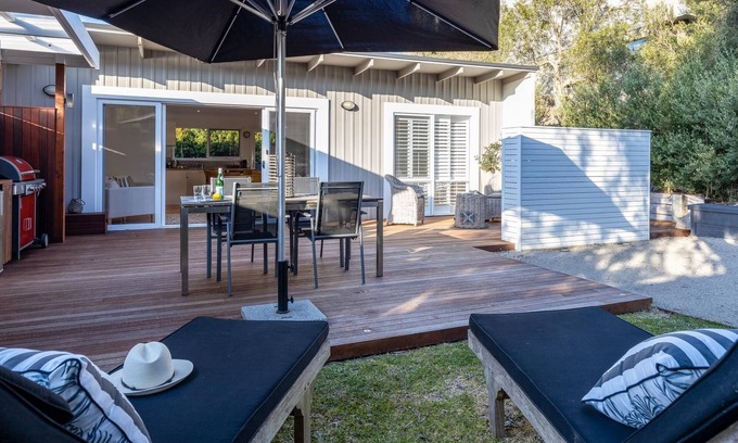 Villa No. 4 offers a sanctuary to recuperate and escape the stresses of everyday life. Nestled at the end of four Villas, it features doors opening to a private garden with sun lounges and alfresco dining on the merbau entertaining deck, fitted with an outdoor kitchen, mains connected BBQ, bar fridge and sink. The Villa is ideal for those wanting a peaceful getaway, whilst also offering the option of hiring the other neighbouring Villas to enjoy time with your extended family and friends.