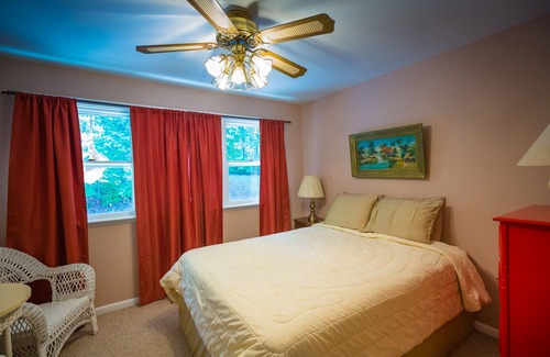 Local trails (Old Habron Gap, google it!) access the ridge of Massanutten Mountain within walking or you can drive the distance from Captain's Lodge on the Rapids! Some of the best single track switch back technical Mountain Biking are nearby. Luray Caverns is only 11 miles from Captain's Lodge on the Rapids; several other caverns are within driving distance. King bed in the Master Bedroom with customized newly renovated bathroom. The rate structure allows you to rent the Lodge exclusively with access to only what you need for your stay.