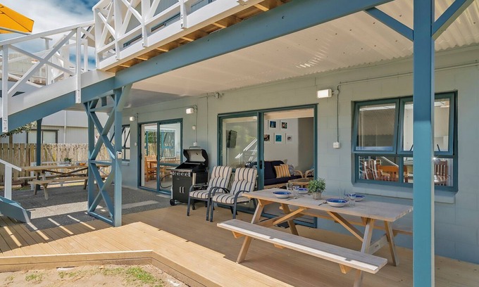 Sleeping up to 9 guests across two fully self-contained ground floor units, Captains Bach @ Cooks has plenty of space for the whole family to spread out and find a spot to chill out.