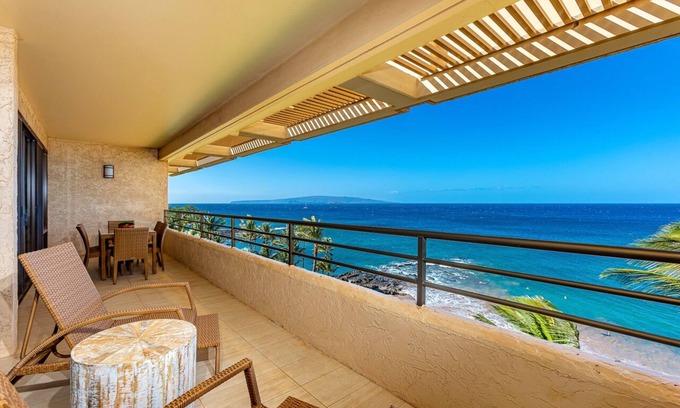 The floor-to-ceiling sliding glass doors allow for seamless indoor/outdoor enjoyment. The private grand lanai offers plenty of space to enjoy your favorite beverage and lounge. Gaze off at the mesmerizing views of Molokini, Kaho'olawe, and the West Maui mountains.
