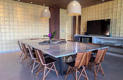 This stunning riverfront villa features 7 spacious air-conditioned suites that comfortably accommodate up to 18 guests. Nestled on the banks of the Caraíva River, the property offers a breathtaking infinity pool with a heated jacuzzi, sauna, and an integrated lounge. A full professional staff is included: concierge, private cook, housekeeper, gardener, and pool maintenance.