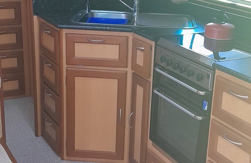 Very comfortable 2 berth caravan with own bathroom, kitchen and cafe seating around a bi-fold table.