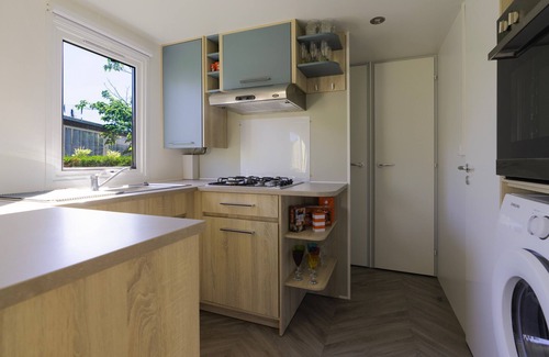 The caravan "Mobilhome 373" in Lattes is the perfect accommodation for a stress-free holiday with your loved ones. The 40 m² property consists of a living room with a sofa bed for 2 people, a well-equipped kitchen, 3 bedrooms and 2 bathrooms as well as 2 additional toilets and can therefore accommodate 8 people. Additional amenities include portable air conditioning units.