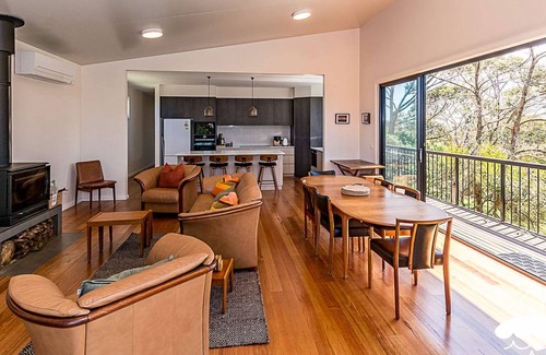 Perched among the trees, the house blends harmoniously into the natural surroundings, providing a sanctuary for relaxation and a base for adventure. Wake up to the crisp, clean air and the soothing sounds of birdsong, and unwind on your private deck with views towards Wilsons Promontory in one direction and the shimmering waters of Waratah Bay in the other.