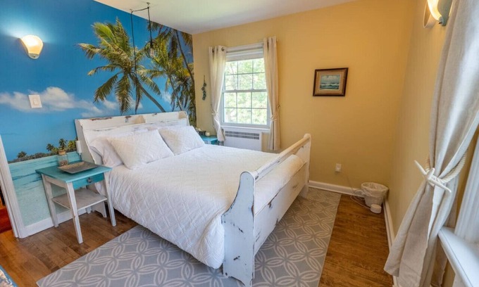 The "Beach Room" will whisk you away to a sandy location. The room is well lit and airy and is equipped with a queen bed for the most comfortable night's sleep. After all there is nothing quite like a beach getaway! You'll almost be able to hear the crashing of the waves and smell the salt in the air!