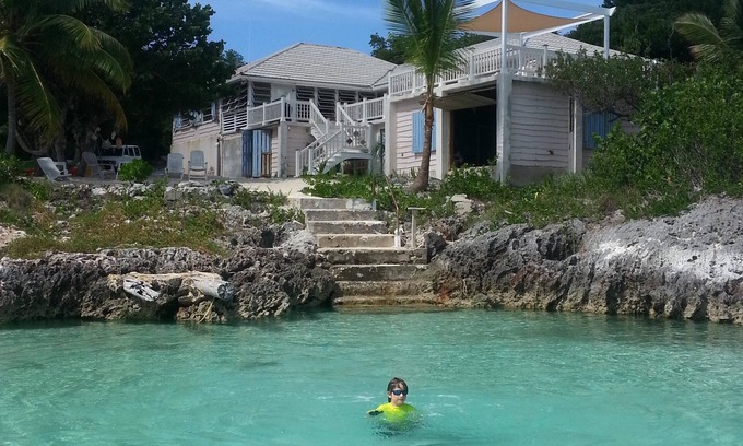 The Bluemoon is the ideal location to soak in the tranquil sea or have a sunset cocktail on the deck or our small private beach. Our favorite restaurants are near by ...Unique Village for the best cracked conch on the island, everyone likes the French Leave restaurant 1684 , my personal favorite for lunch is da Perk coffee shop in Governers Harbour! Runaway Bay Marina is a short walk from the house.