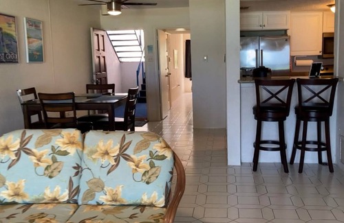 Our place has a brand new Central Air System which is a unique luxury in St. Croix. Our condo has 2 bedrooms and 2 full baths with the living room and master bedroom facing the surf. The kitchen has all new appliances and is fully equipped including a blender for all those fabulous frosty drinks so you can enjoy the local rum our island is famous for!