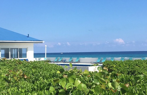Newly renovated! Gorgeous glass wall sliding doors where you step out to your private patio complete with furniture and BBQ, then from the patio out to the sand, shells and surf!. Our ocean front condo it on the first floor with easy access from the front door or the glass doors (Oceanside).