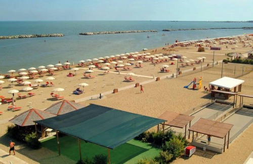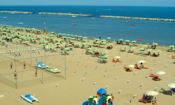 Viserba 3 km from Rimini: Simple residence "Carioca", 4 storeys. 20 apartments in the residence. In the district of Viserba 3 km from the centre of Rimini, excellent location: right in the centre but still quiet, traffic calmed area, 30 m from the sea, 30 m from the beach, road to cross. In the house: lift. Beverage service. Public parking 300 m. Railway station "Viserba (Rimini Viserba)" 700 m. Nearby attractions: Rimini 3 km. Please note: car not advisable. The owner does not accept any youth groups. Loading and unloading of baggage is possible at the holiday house. The apartment is located in a zone with limited traffic.