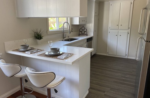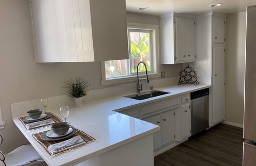 Welcome to our beautifully updated & decorated Carlsbad Retreat SINGLE LEVEL HOME (no climbing up and down the stairs) located in Olde Town Carlsbad, right off Tamarack Ave In a quiet & safe neighborhood, minutes away from everything! It has all you’d want to come enjoy the ocean at Tamarack State beach, with stunning sunsets in the evening, Agua Hedionda Lagoon, Carlsbad Village, Legoland, & family and friends. You’ll create beautiful lifetime family memories, so come stay and recharge your Soul!! The home is remodeled, 4 Bedrooms and 2 baths, stunning beautiful front yard landscape, & backyard patio outdoor couch set, outdoor dining set with umbrella and BBQ grill. You will be safe as our home is professionally cleaned with disinfecting household cleaners before every new stay. (Covid 19 protocol)