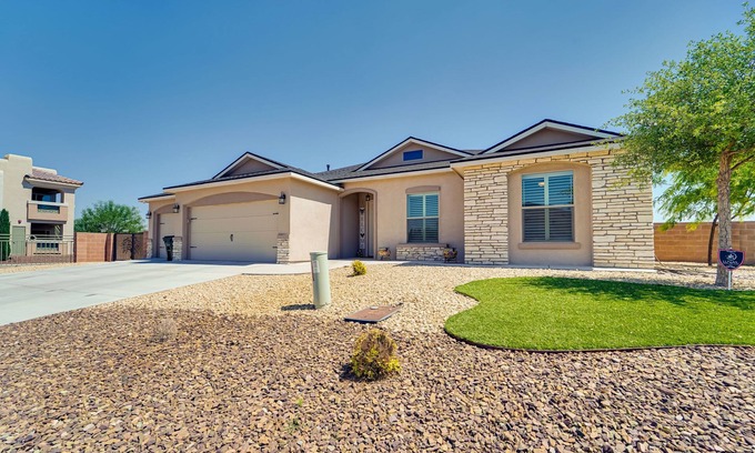 Unwind and rejuvenate in this 3-bedroom, 2-bathroom Carlsbad vacation rental. This well-appointed, single-story house offers inviting furnishings, a WFH office, a fire pit, a gas grill, a fireplace, and even step-free access. Catch some rays in the fenced backyard or build a tasteful charcuterie board in the kitchen. Explore the depths of Carlsbad Caverns National Park, grab a bite at Yellow Brix Restaurant, meander along the Riverwalk, or take a day trip to Guadalupe Mountains National Park.