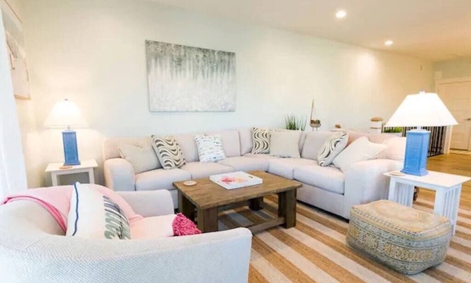 Carolina Casita is a new 4Bd/4Ba townhouse built in 2020 with custom finishes and beautiful yet cozy coastal decorating throughout. Perfect fit for a family that loves to vacation in style! This property is an easy 4 minute walk to the beach and close to the Ocean Front Grill and Tiki Bar. Centrally located to all things Carolina Beach: biking, kayaking, fishing charters, hiking at the CB State Park and our famous boardwalks and fishing piers with great restaurants and shopping!