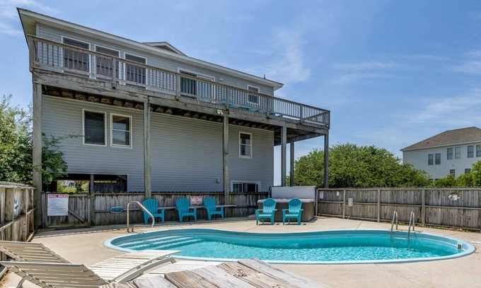 Enjoy all that Duck has to offer at this lovely Outer Banks vacation rental. Plenty of room, a private pool, and many more convenient amenities await you at 'Carpe Duckem'. It's an easy walk for a day at the beach, or you can spend your time enjoying the private pool and hot tub at the property. You will love the pool deck area with plenty of room to recline in the sun while the kids play. Evenings under the stars while soaking away a year's worth of stress in the poolside hot tub are yours if you like. Kids of all ages will enjoy the foosball table. Wireless internet access is provided so you can stay connected all week at your leisure. Open kitchen with stainless steel appliances, you can cook and socialize at the same time. Just minutes from quaint village shopping, local eateries, coffee shops, bookstores, and water sports. Head south for movies or north for Wild Horse tours. This outstanding Duck vacation property is centrally located so you can have the best of everything at 'Carpe Duckem'.