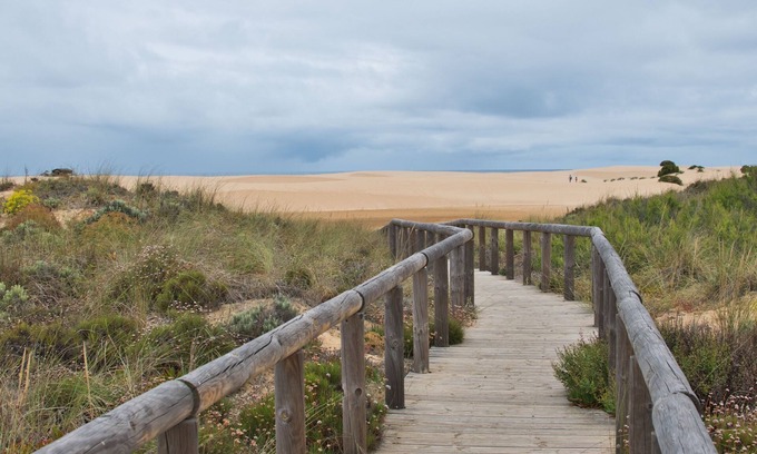 Built from environmental friendly materials, using traditional adobe bricks, the house compreende the large open plan living and dining space with kitchen, a spacious double bedroom on the mezzanine level (16 m2) and a high spec bathroom. The kitchen comes fully equipped and the whole is tastefully decorated. To the rear of the house is a well maintained terrace (16 m2) with a beautiful view of the dunes sand and the Natural Park. The house is at the far end of a small private condominium, set away from the road and any noise. It is the ideal choice for Those looking for romance, the perfect surfing spot, to explore the Rota Vicentina (Whether by foot, bike or on horseback), or simply to relax and enjoy the beaches and the beauty of nature.
