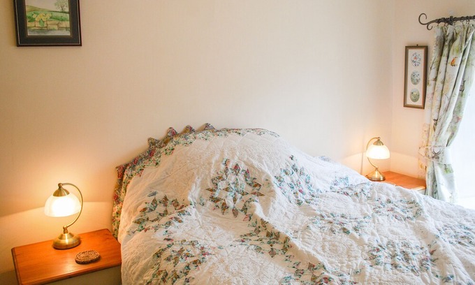 Amenities: Gas central heating with woodburning stove. Electric oven and hob, microwave, fridge, washing machine, TV with Freeview, Blu-ray DVD, CD/digital radio/MP3 player with iPhone Lightning dock, WiFi. Fuel, power and starter pack for stove inc. in rent. Bed linen and towels inc. in rent. Gravelled garden with patio and furniture. Roadside parking may be available opposite property, plus roadside parking in the main square approx 50 yards away. Two well-behaved pets welcome. Sorry, no smoking. Shop and pub 1 min walk. Note: The property is located on a main road
