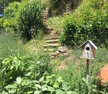 Food & DrinkTea/Coffee maker, Bottle of waterBathroomPrivate bathroom, Bathtub or shower, Toilet paper, Hairdryer, Shower, Towels, Free toiletries, Shampoo, Body soapMedia & TechnologyFlat-screen TV, TV, Radio, Cable channelsKitchenDining table, Microwave, Kitchen, Coffee machine, Kitchenware, Electric kettle, Cleaning products, Kitchenette, StovetopLiving AreaSitting area, Fireplace, Sofa, Dining areaGeneralTrash cans, Key access, Tile/Marble floor, HeatingBedroomWardrobe or closet, LinensViewGarden view, Quiet street viewAccessibilityUpper floors accessible by stairs onlyBuilding CharacteristicsPrivate apartment in building, Semi-detachedEntertainment & Family ServicesBoard games/puzzlesRoom AmenitiesAdapter, Non-feather pillow, Sofa bed, Socket near the bedLayoutWindowCleanliness & disinfectionHand sanitizer |