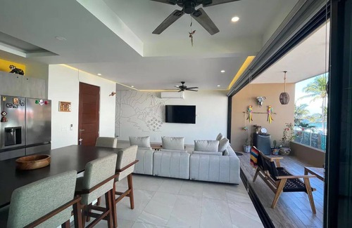 Enjoy San Pancho right at the beach at our beautiful water front condo were you can hear and see the waves clashing, the iguanas soaking in the sun and hear the different species birds.