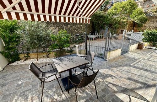 Food & DrinkTea/Coffee makerBathroomShower, Private bathroom, Toilet, Bidet, Hairdryer, Towels, Toilet paperMedia & TechnologyTV, Flat-screen TVGeneralKey access, Smoke Alarm, Fire extinguisher, Heating, Tile/Marble floor, Carbon monoxide detector, Air conditioningKitchenMicrowave, Dining table, Refrigerator, Dishwasher, Oven, Stovetop, Wine glasses, Electric kettle, Washing machine, Coffee machine, Kitchenware, KitchenLiving AreaSofa, Dining area, Sitting areaOutdoorsPatio, Outdoor dining area, Outdoor furnitureBedroomLinens, Wardrobe or closetViewGarden viewAccessibilityEntire unit located on ground floorBuilding CharacteristicsPrivate apartment in building |