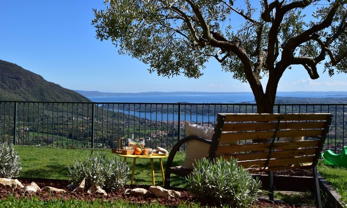 Casa Allegra is placed on sunny hills that dominate the Gulf of Salò from above, offering a panorama that extends to the eastern coast of the lake.