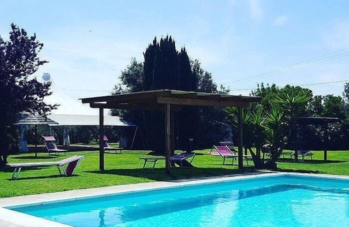 The swimming pool is 7.5 meters (25 feet) large by 15 meters (50 feet) long. The area is equipped with sun umbrellas, sun loungers, two gazebos and an external shower. From the swimming pool you will enjoy a spellbinding view of the garden. You will share the pool with the other guests staying at the complex. The swimming pool is open from the beginning of May until mid-October.