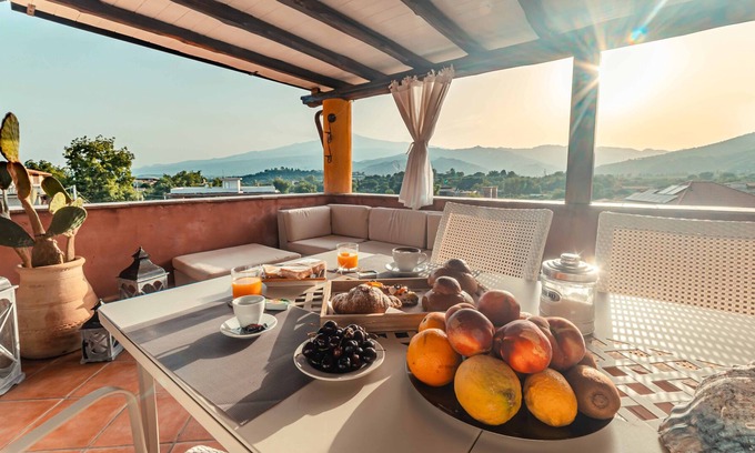 Casa Aurelio Sicily Suite is a holiday home located on the second floor of a beautiful Sicilian-style villa surrounded by greenery close to the southern area of Taormina, the commercial one where you can easily find everything you need for a holiday at home. In the immediate vicinity there is the Giardini Naxos motorway exit from where you can leave for the countless tourist attractions of eastern Sicily and why not even during the day for other areas of Sicily. We favor families with children (up to 12 years old) to whom WE HAVE THE RATE FOR 2 PERSONS PAY. It is in a strategic position for any type of holiday, whether you prefer to stay in the surroundings of Taormina or to go around the whole area, it doesn't matter, the house is close to everything. But the benefits do not end here, this beautiful attic has an agreement with the underlying CrimiCentroPosturale which allows guests to use the hydro-massage pool and counter-current swimming and the gym for free, while at a discounted price you can take advantage of the sauna, Turkish bath, relaxation massages or therapies or request a Posturologist / Osteopath.