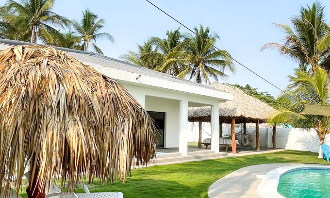 Azul is a beautiful, bright and tranquil, oceanfront property, located in Playa el Pimental, 25 minutes away from Comalapa Airport, 1 hour from San Salvador and 45 min from Sunset Park. The house is a 3 bedroom, 2 bathroom, open concept kitchen/ living room with a luxurious eating island, and air condition throughout the entire house. You can relax in the shaded terraza overlooking and enjoying the ocean breeze, eat al fresco in the outdoor gazebo or simply enjoy the tropical bliss in a hammock.