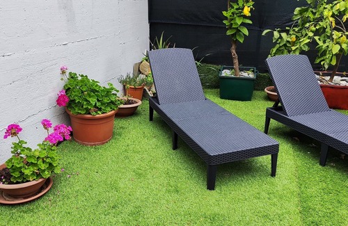 Here you can relax in the outdoor space with lawn and garden table for your dinners, sip a glass of wine and let the sea breeze pamper your senses.