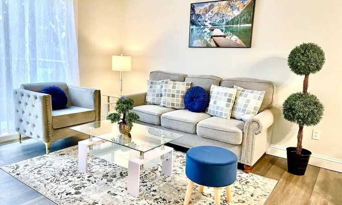 Casa Bella Homes- your home away from home! Homey vibe, has own washer& dryer in the unit, ample space for free parking in front of the building, utilities included, free wifi, smart TV, gym & pool. Kitchen is well-equipped for cooking, baking, and dining. Coffee, tea, creamer, sugar, salt, pepper, and oil are available in the kitchen pantry. Starter kits are provided like toiletries, dishwashing, laundry, and cleaning supplies. Linen, towels, and blankets are provided for your comfort. Dimmable lights, USB charger with bedside touch lamp, and blackout curtains are provided for your convenience.