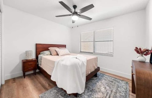 Our Casa Bella Retreat is a cozy single-family home surrounded by the equestrian charm of Wellington. The screened-in patio is a family favorite, featuring a large pool for a refreshing splash and a heated jacuzzi spa to unwind after a day of exploring. The fenced-in yard ensures a safe play area for pets and kids, and there's comfy seating, a firepit, and a BBQ grill for family cookouts.