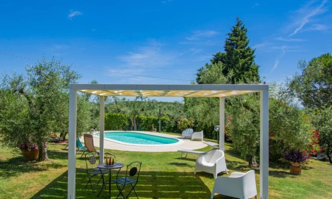 Beautiful, comfortable country house "Casa Bensa". 6 km from the centre of Montelupo Fiorentino, 4.5 km from the centre of Capraia e Limite, 30 km from the centre of Firenze. Private: property 2'500 m2 (fenced) with lawn and wildlife garden, beautiful garden to relax, swimming pool (8 x 4 m, depth 140 cm, seasonal availability: 15.May. - 15.Oct.). Outdoor shower, garden furniture. In the house: billiard table. Stepped path (15 steps) to the house. Parking (for 3 cars) on the premises. Supermarket 4.5 km, railway station "Montelupo Fiorentino" 5.6 km, sandy beach "Tirrenia" 70 km. Golf course (9 hole) 8 km. Nearby attractions: Firenze 30 km, Pisa 65 km.
