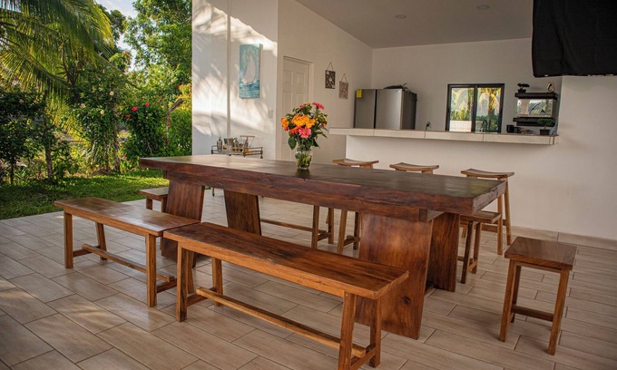Escape to a welcoming resort in El Zapote for an awesome stay. This property boasts 8 cozy bedrooms with a mix of full and king beds, ensuring an enjoyable night's sleep for all guests. With 8 bathrooms equipped with showers, there's no need to wait in line for your turn. Relax in the AC-cooled rooms or explore the lush waters all around. We look forward to hosting you at our place.