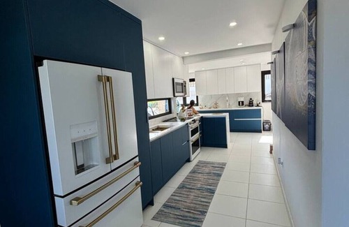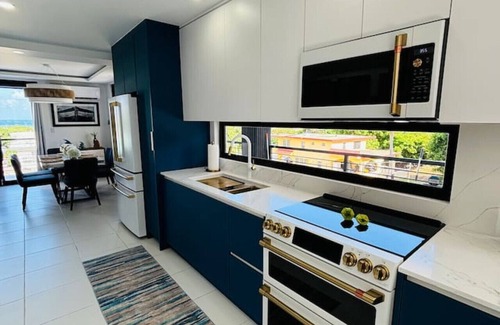 Guests will love the designer kitchen outfitted with high-end Café brand appliances. Enjoy preparing meals while taking in stunning views of the ocean. Whether you’re cooking, entertaining, or just enjoying a morning coffee, the kitchen's open design lets you soak in the beauty of the sea from every angle. Plus, the backyard and balconies offer more incredible ocean vistas, making it the perfect place to relax or share a meal with a view.