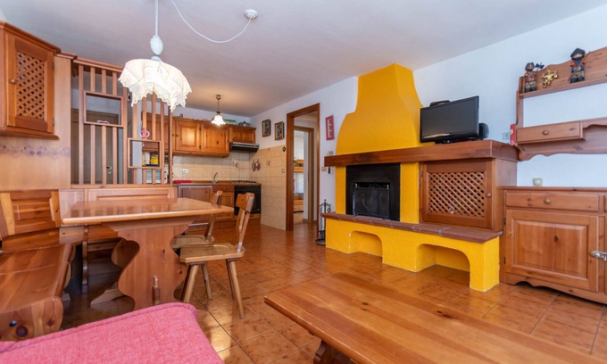 Welcome to "Blue Sky House," your cozy retreat overlooking the beautiful Fassa Dolomites, in the heart of Moena, known as the "Fairy of the Dolomites." This beautiful apartment, located on the second floor of a well-maintained residence, awaits you for an unforgettable experience.The location of the "Blue Sky House" is truly enchanting. Just a short walk from the bustling center of Moena, you can immerse yourself in the magic of this enchanting resort in the Dolomites. But the real show begins when you cross the threshold of this vacation home.The living area welcomes you with a charming fireplace. The kitchenette is functional and equipped with a gas stove, perfect for preparing delicious meals to enjoy with friends. But what makes the "Blue Sky House" special is its beautiful terrace, where you can enjoy sunny days admiring the breathtaking spectacle of the Dolomites. And when night falls and the snow begins to fall, the terrace turns into a magical place to admire the beauty of winter.The "Blue Sky House" offers a master bedroom and a small bedroom with a bunk bed, guaranteeing four comfortable beds. Here, you can relax and rest in a cozy environment, ready to make you feel at home. And if you are an animal lover, know that you are allowed to bring a dog (unfortunately, we cannot accommodate cats) for a small fee.For those who travel by car, the covered parking space in the condominium garage is an added advantage.The "Blue Sky House" is more than just a vacation home; it is a place where you can experience the Dolomites in all their splendor. Book today and get ready for an unforgettable experience in Moena, the "Fairy of the Dolomites."