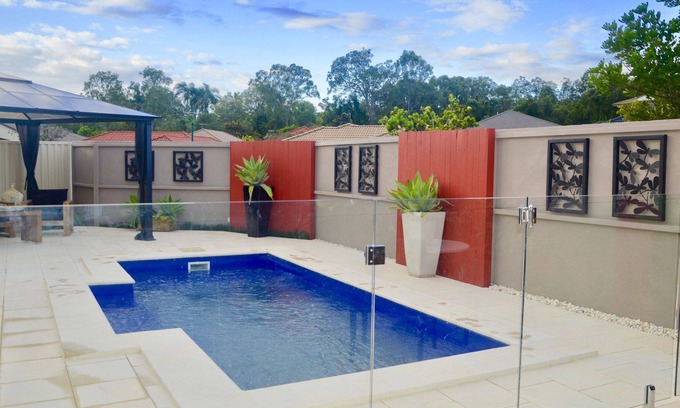 Casa Bonita is a newly renovated home featuring a private pool, air-conditioning and open plan kitchen. The layout is perfect for families and large groups wanting to experience a perfect location for a holiday or any family or group event. Casa Bonita is close to all the Gold Coast attractions including theme parks and beaches while Brisbane is only a short drive away 30 mi M1. The space is fitted with modern décor, and surrounded by a beautiful garden escape.
