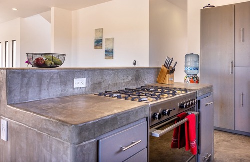 A beautiful 3 bedroom 'off the grid' home in a desert oasis only 1hr from San Jose del Cabo Airport. Enough room for guests to have their own space or gather in the open living/kitchen/dining area. Outdoor patios on each level offer ocean views and a sea breeze. Watch whales during the migrating season November - April. Each bedroom has a private bathroom with shower, sink and toilet. Choose to swim in the infinity pool or learn to surf at Cerritos which is only a short drive or a 25 minute walk. Todos Santos is a 15 minute drive offering lots of art galleries, restaurants and music festivals.