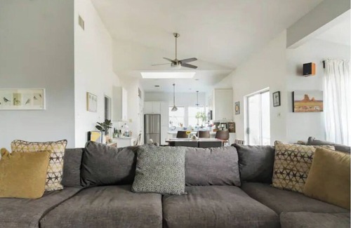 Welcome to Casa Caliza, an inviting home designed for relaxation, connection, and fun. With an open layout, this space is perfect for spending quality time with friends and family. Relax on the large sectional sofa to watch your favorite shows on Netflix or access basic cable channels via Sling. Bring your music to life by connecting your phone to the Bluetooth speakers, or enjoy a curated selection of classic vinyl records on the record player for a touch of nostalgia.