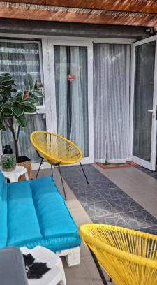 BathroomShower cap, Body soap, Shower, Towels, Private bathroom, Hairdryer, Free toiletriesMedia & TechnologyFlat-screen TV, Streaming service (like Netflix), TVGeneralSmoke Alarm, Carbon monoxide detector, Private entrance, Key access, Air conditioning, Tile/Marble floor, Soundproof, Fan, Heating, Trash cansKitchenMicrowave, Kitchenware, Washing machine, Refrigerator, Kitchen, Kitchenette, Cleaning products, Coffee machineLiving AreaSitting area, SofaBedroomWardrobe or closet, LinensOutdoorsTerrace, Outdoor furnitureAccessibilityEntire unit located on ground floor, Entire unit wheelchair accessibleBuilding CharacteristicsDetachedRoom AmenitiesSofa bed, Non-feather pillow, Fold-up bed, Clothes rack, Drying rack for clothing, Feather pillow, Adapter, Socket near the bed |