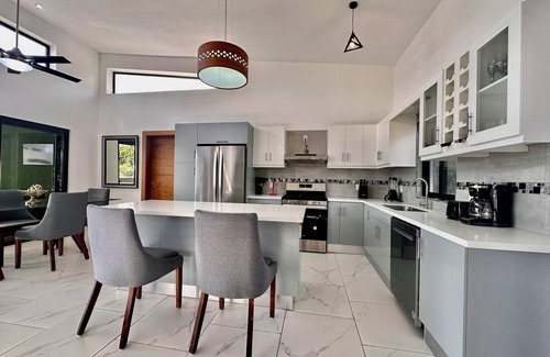 For those thinking how amazing it would be to stay at a Superior 3 Master villa with optional all inclusive perks, it would be our pleasure to assist with customizing your stay to include CASA COCO optional pre-arrival beverage / grocery shop, CASA COCO optional airport transportation or CASA COCO optional private chef service if desired...Fees for the optional services are paid directly to the service provider...Each Master standard includes extra bedding, blackouts, a flat screen, wifi, cable, safe, individual a/c and a ceiling fan...Each private ensuite has been well stocked with pool towels, bath towels and hand towels...The CASA COCO-VIDA air conditioned interior lounge has an amazing custom, open kitchen that would be welcomed by any chef as well as there is an outdoor BBQ...Also located within the interior lounge is an entertainment seating area which has a large flat screen for CASA COCO guest desiring to catch an exciting game or a great movie...Within the interior lounge is a 20 ft slider that leads directly out to the fabulous outdoor living area...There are sun loungers to make spending time around the CASA COCO-VIDA pool even more enjoyable...The private pool has lights so that CASA COCO guest can enjoy evening swims during their stays...CASA COCO-VIDA has a very inviting covered terrace that will also be enjoyed as it has been furnished with a dining & entertainment seating, a wet bar with bar chairs and a flatscreen...The laundry room has both a full size washer and dryer...As previously stated a very generous supply of pool towels, bath towels, hand towels and extra bedding are supplied on arrival...Guest are responsible to take care of soiled towels & bedding during their stay only if felt more clean towels or clean bedding were needed during stay, but it will be a pleasure for CASA COCO to take care of all soiled towels and bedding after departure.